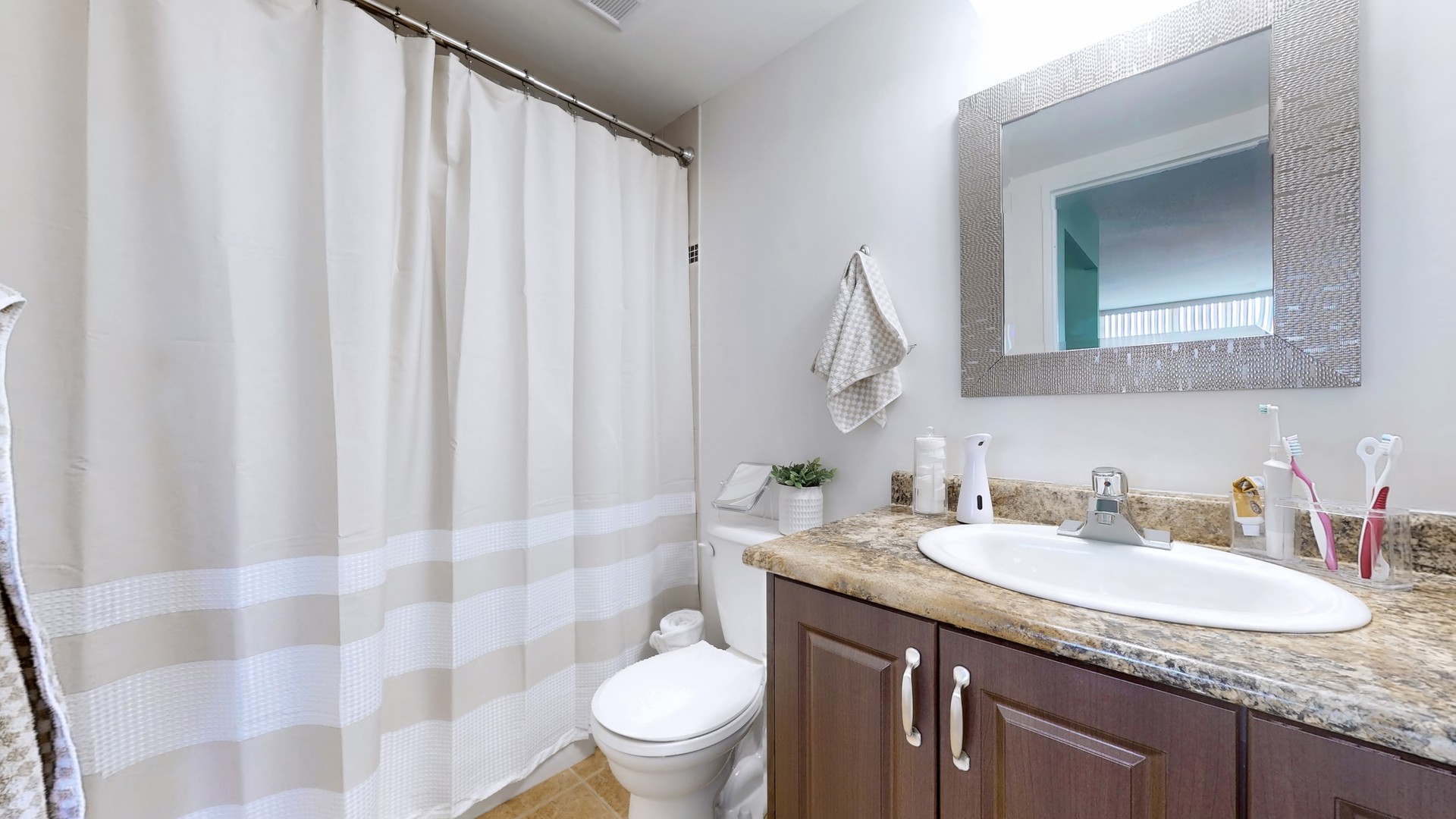for working from home or relaxing. The upgraded kitchen features new countertops, a stylish