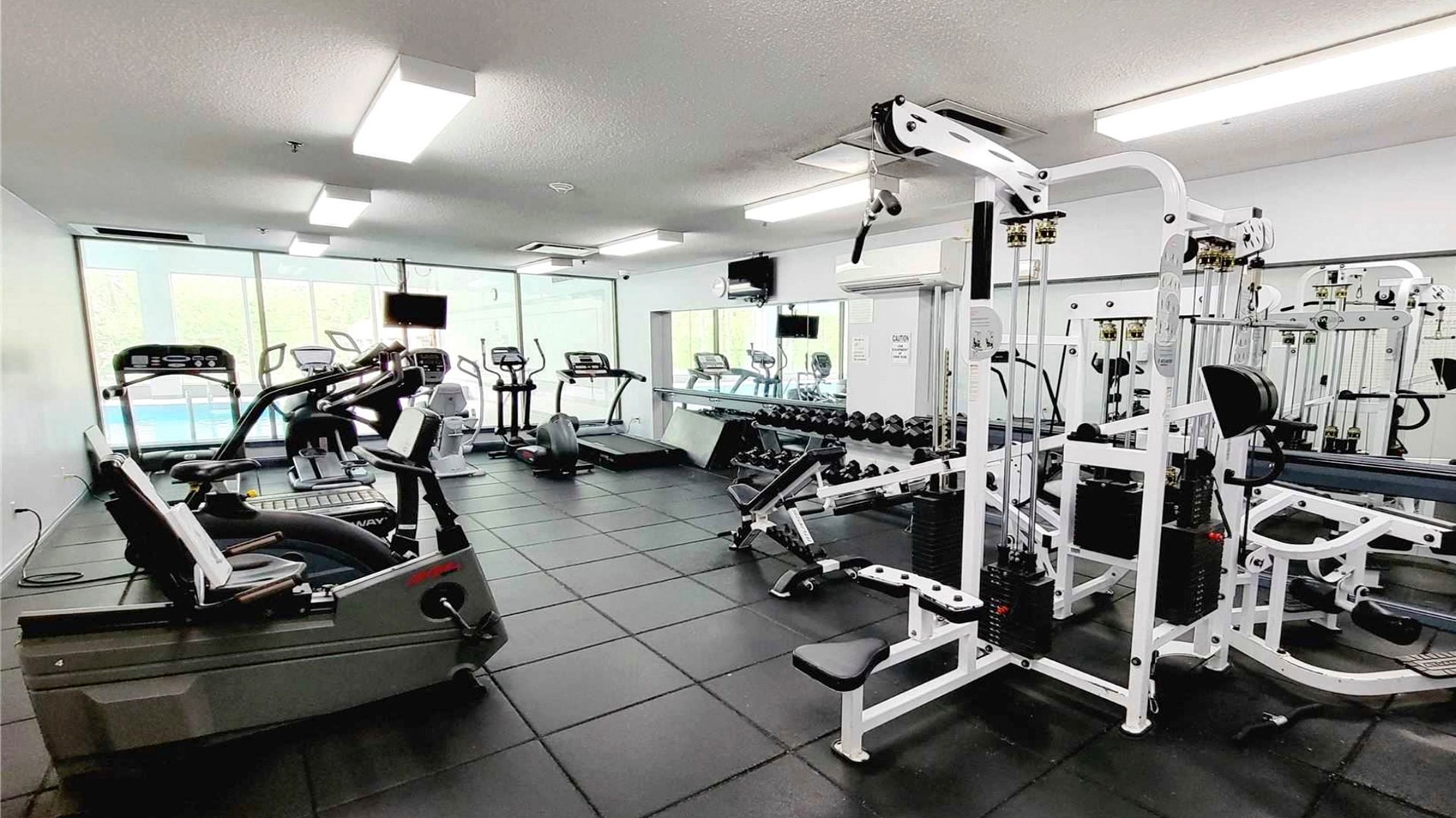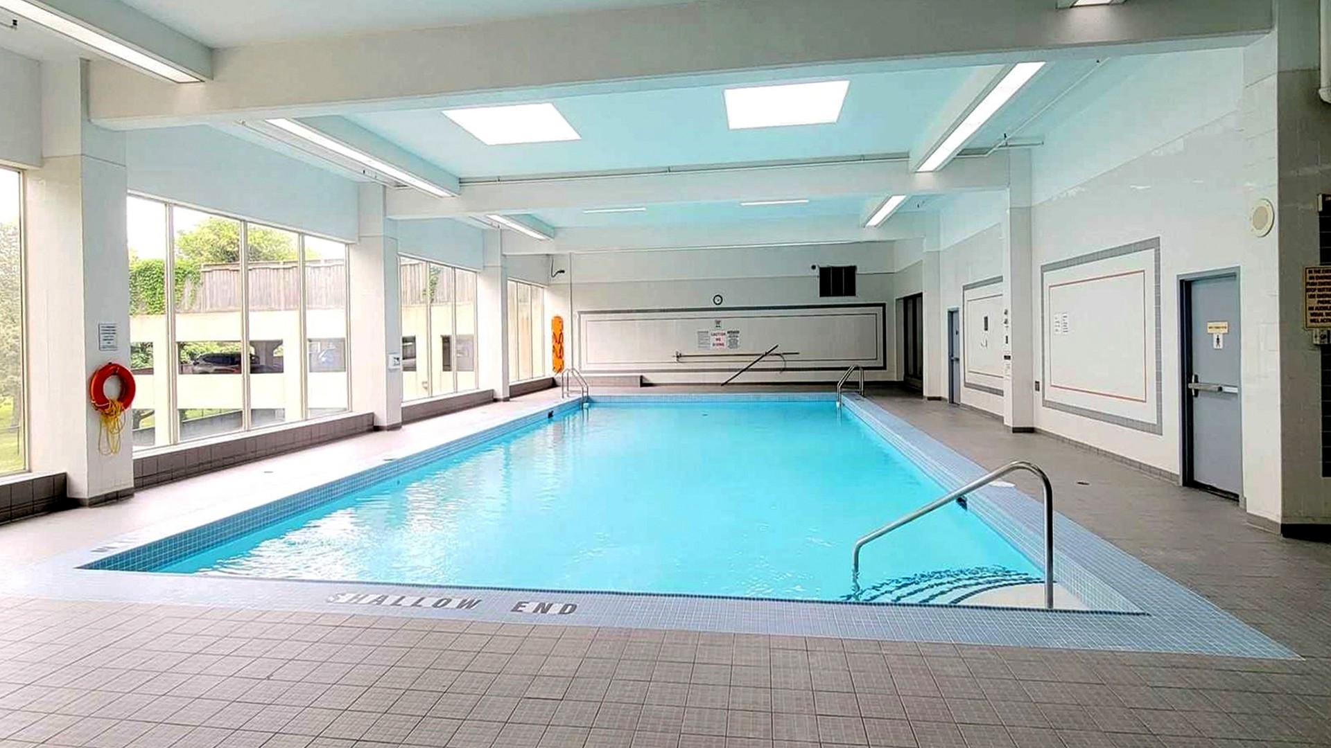 The building offers fantastic amenities: indoor and outdoor pools, hot tub, sauna, gym, party