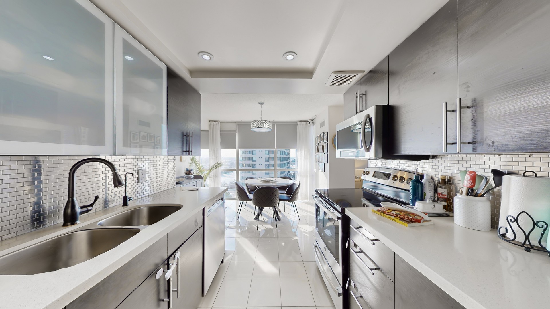 Wake up in a sun-filled corner sanctuary offering 1,380 sq ft of thoughtfully designed living space, where natural light pours in throughout the day with breath taking view .This rare 2-bedroom plus den, 2-bath corner residence with 2 parking spaces is more than a home-it's a lifestyle upgrade, blending exceptional rarity with an unbeatable location.The spacious layout showcases a premium kitchen with High end stainless steel appliances, sleek countertops, seamlessly flowing into expansive living and dining areas with private, unobstructed breath taking views. Enjoy the convenience of ensuite laundry, generous storage, and a spacious primary suite designed as your personal retreat.The Platinum's resort-style amenities elevate everyday living, featuring a fitness centre, heated pool, whirlpool, sauna, party rooms, landscaped gardens, concierge service, and ample visitor parking. Comprehensive maintenance fees include water, heating, building insurance, and parking-offering peace of mind and outstanding value.Step outside to everything Mississauga has to offer: Celebration Square, Square One Shopping Centre, Sheridan College, acclaimed dining, parks, and seamless transit connections are all moments away.Opportunities to own a 2-bedroom plus den corner unit of this calibre are rare. With superior natural light, premium positioning, and generous proportions, this residence won't last long. Whether you're growing your family, working from home, or investing in prime Mississauga real estate, The Platinum is where lifestyle and location converge.Schedule your private showing today-exceptional homes are claimed quickly.