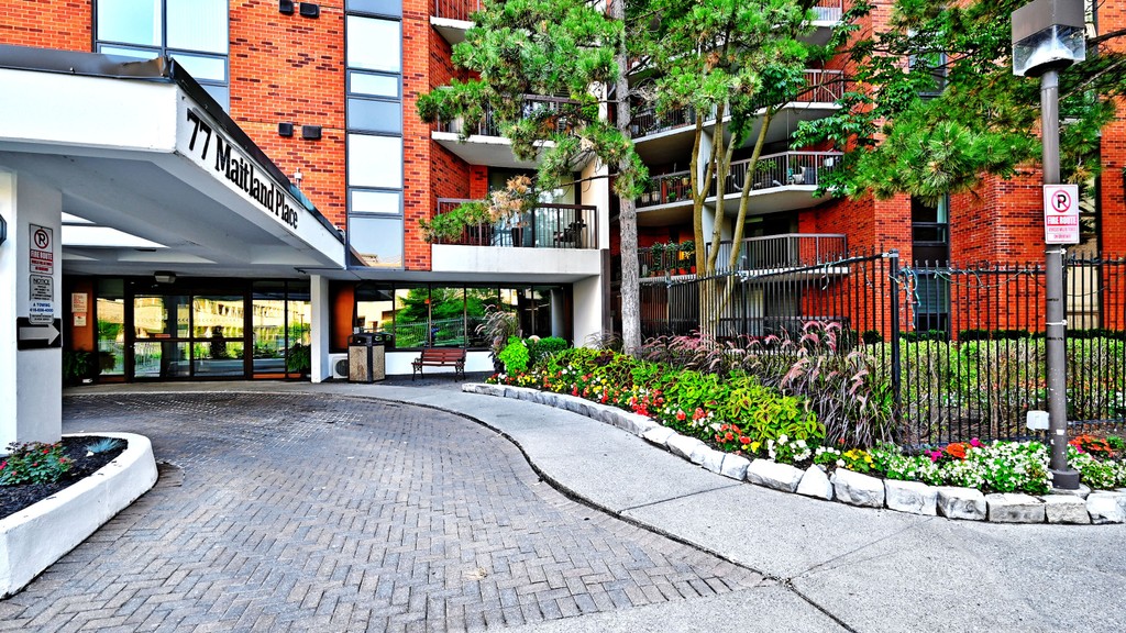 Welcome to Celebrity Place Condominiums, a hidden downtown gem at 77 Maitland Place. Set within its own gated, private park-like grounds in the heart of Toronto. Held by the same owner since 1989, this rarely available suite represents a standout opportunity in the downtown core. Featuring two full bedrooms, two full baths, and generously sized principal rooms, the layout offers excellent fundamentals for both end users and investors. A large, rectangular balcony easily accommodates full outdoor seating and adds valuable livable space. The master ensuite has been beautifully renovated with a glass walk-in shower, new fixtures, modern vanity, and upscale tiling. The kitchen remains original, offering clear value-add potential, while stainless steel fridge and stove are already in place. The unit has been meticulously maintained, providing a strong foundation for renovation now or later. Celebrity Place is known for its mature, stable ownership-many residents are downsizers from large suburban homes-supporting long-term value and demand. The location is unbeatable: steps to hospitals, both universities, top shopping, dining, live theatre, and quick access to the DVP and Gardiner. Both major subway lines are approximately a 10-minute walk. Strategically positioned on the 6th floor, the top floor connecting the north and south towers, this unit offers seamless access to amenities and both north and south towers without changing elevators. Amenities include 24-hour concierge/security, visitor parking, party & video rooms, full gym, squash courts, library, and a private in-house convenience store exclusively for residents. Buy, renovate, and capitalize-or move in now and upgrade over time. Review the photos and video attached, and be sure to tour the amenities when viewing. This is downtown condo investing done right.