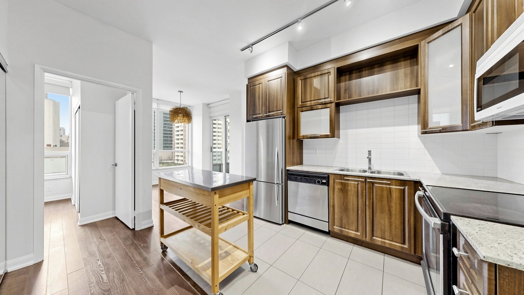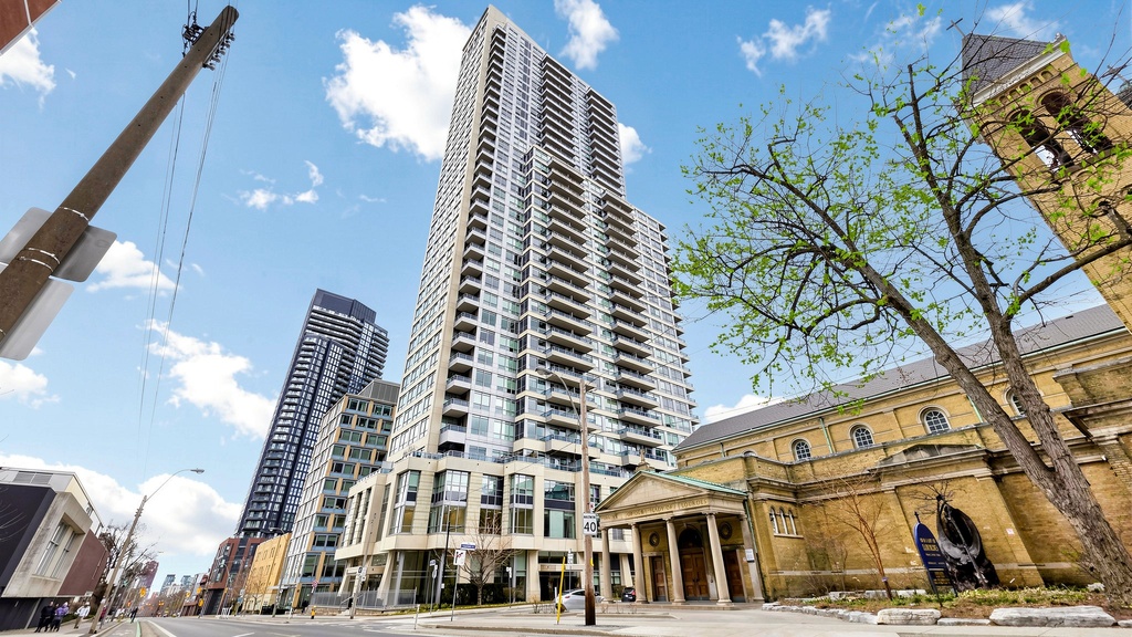 Welcome to The 500 Condos and Lofts- offering a true executive lifestyle living experience in the heart of downtown Toronto. Ideal for first time buyers, an executive couple working from home with the multiple boardrooms and lounges, or the buyer trading down from the big house in the suburbs. This spacious 2 full bedrooms plus 2 full baths is 838 sq. ft. is over 140 sq. ft. larger than the Toronto average for a 2 full bedrooms, 2 full baths of similar price. The versatile dining room easily converts into a 2nd home office. The bright, spacious layout features a modern separate kitchen with, modern full 2 bathrooms in-suite with walk in shower and modern tile. The unit features stunning wall to wall of windows in each room showcasing spectacular city views. This highly sought-after executive style building offers resort-style amenities: modern gym with free weights and cardio area, lounges, work area, games room, boardrooms, and expansive party room and lounge areas. Includes one parking and a storage locker, Plenty of visitor parking and 2 common EV charging stations. Experience unmatched value, space, and lifestyle-book your viewing and include a tour of the exceptional amenities. 5th floor large common terrace with BBQ's and lounge areas, on the 2nd floor, gym, games room, study rooms, guest suites and party room with kitchen. Man floor party room with walk out terrace and 2 common EV charging stations by underground visitor parking.