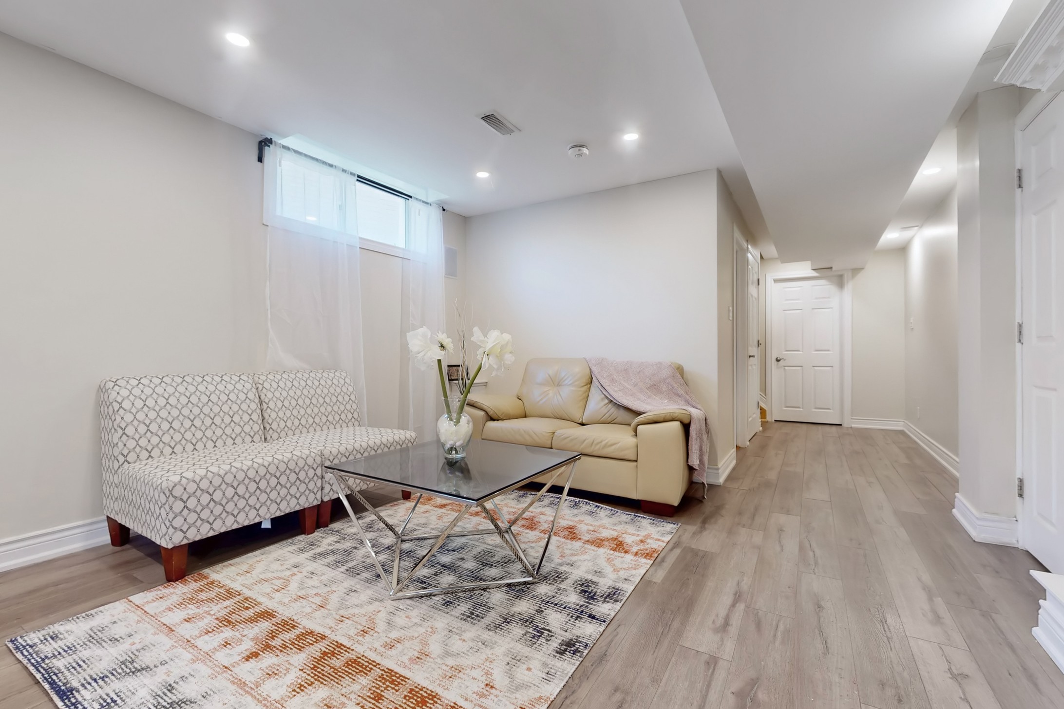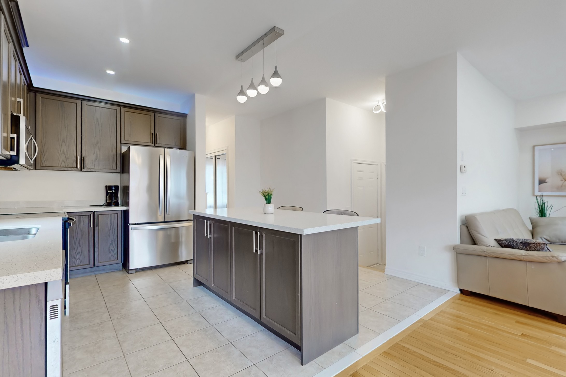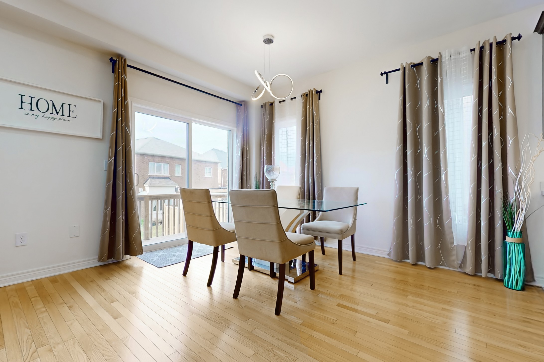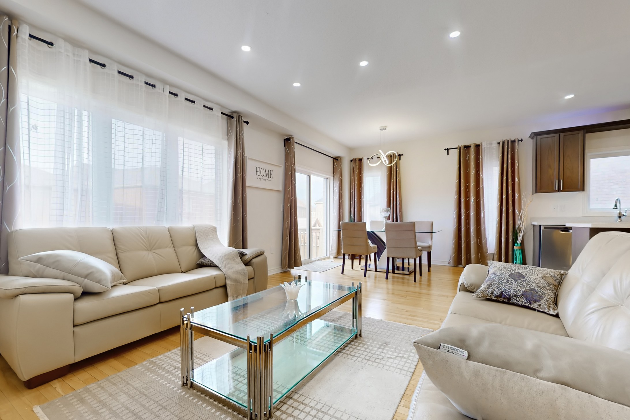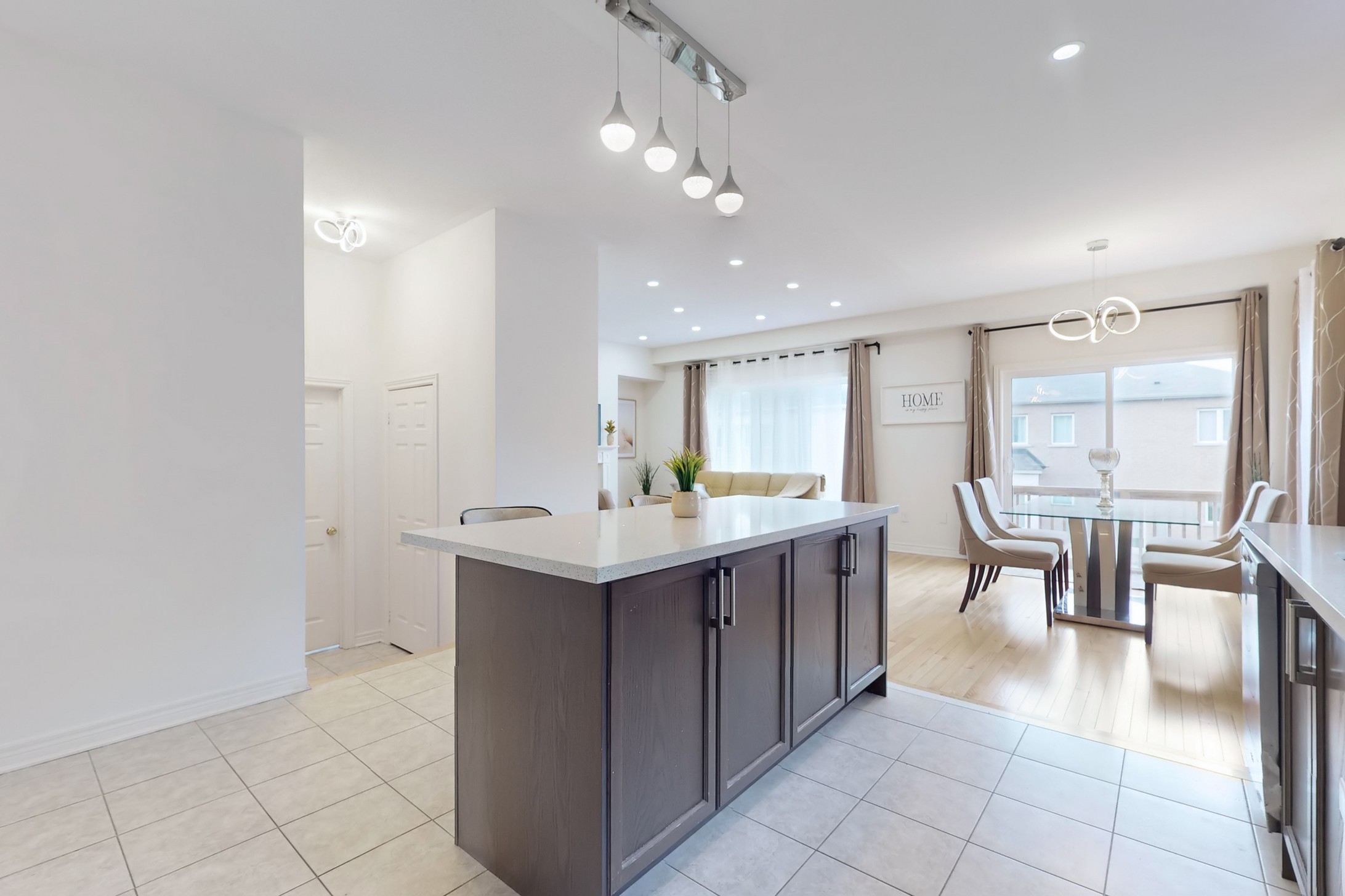This stunning home, located on a premium pie-shaped lot, offers nearly 3000 square feet of beautifully designed living space. The open-concept layout features 9-foot ceilings, creating a spacious and airy atmosphere. The modern eat-in kitchen is equipped with a large center island, breakfast bar, quartz countertops, and stylish lights/ pot lights. The dining area provides a walkout to the deck and backyard, making it ideal for entertaining. The formal family room includes a cozy gas fireplace for added warmth and comfort. Upstairs, you'll find four generously sized bedrooms, with the convenience of a second-floor laundry room. The custom-finished lookout basement apartment, accessible through a separate entrance, includes a fifth bedroom, a 4-piece bathroom, a second laundry, a full kitchen, and a built-in sound system.