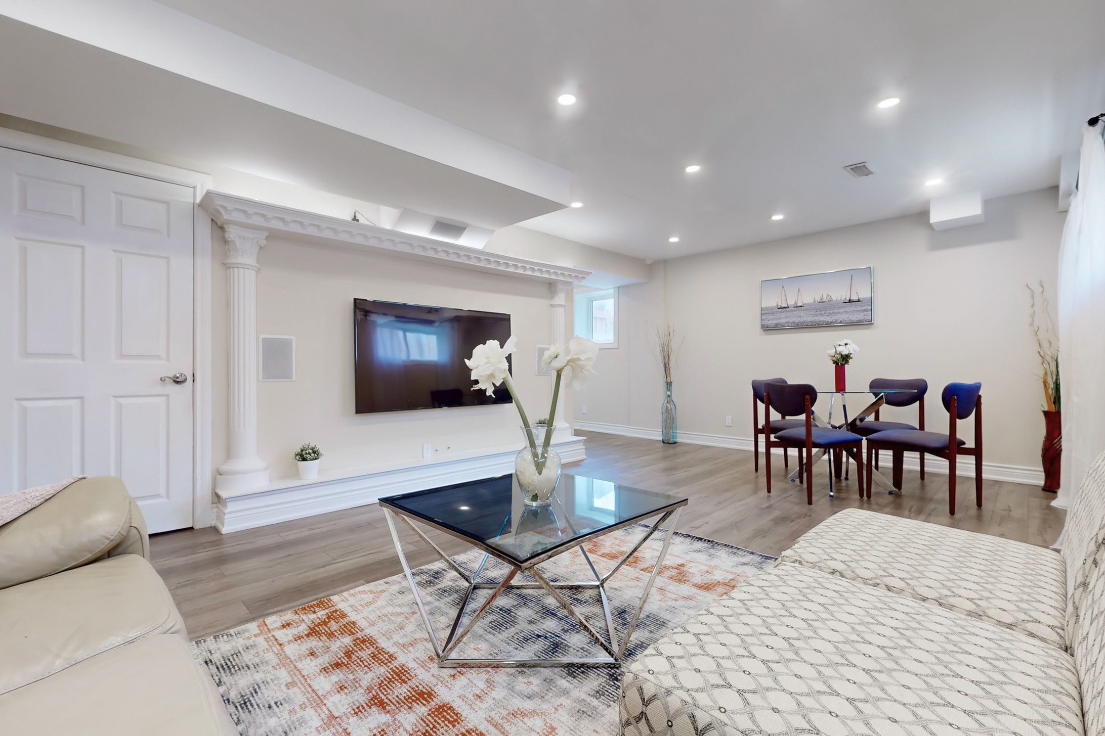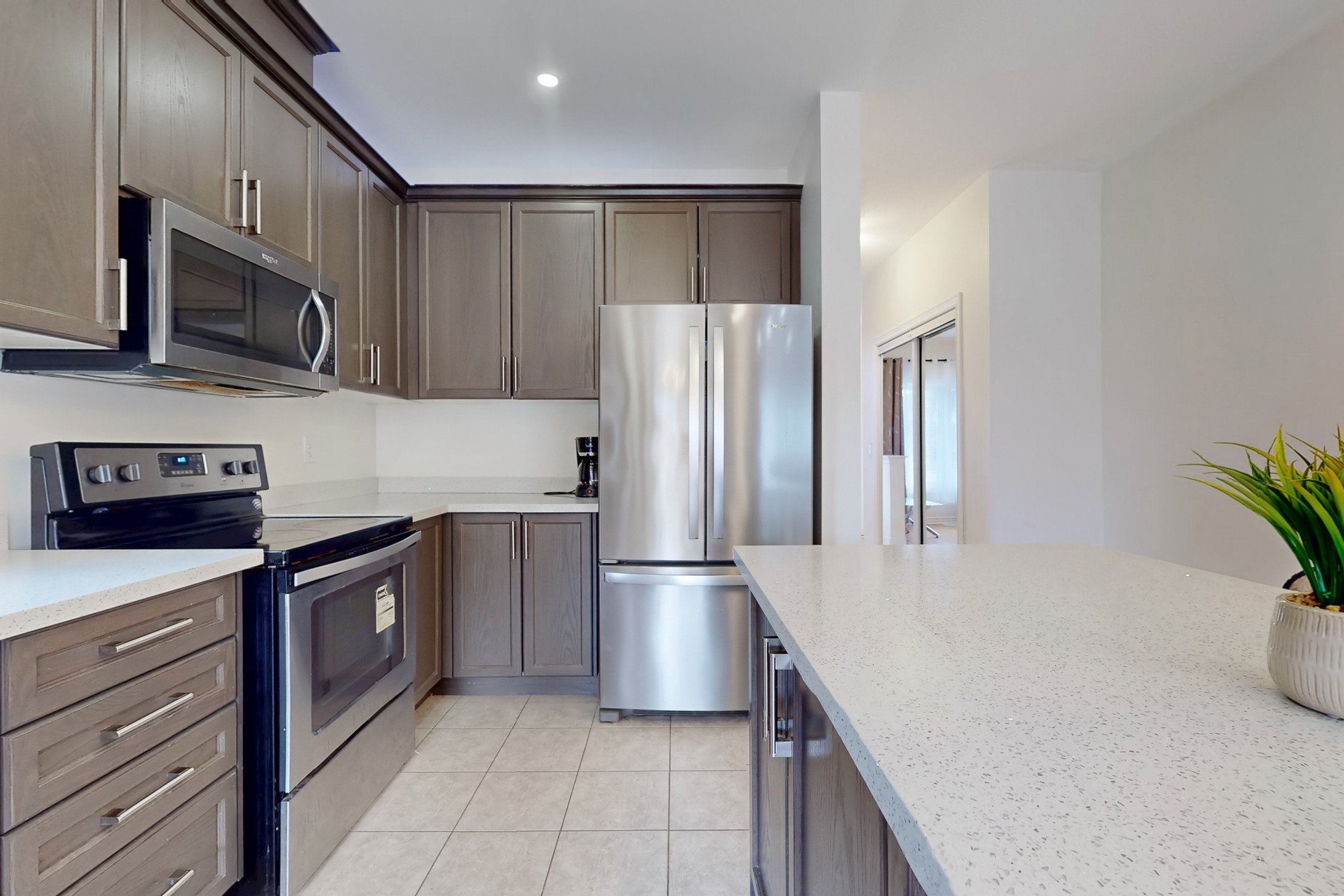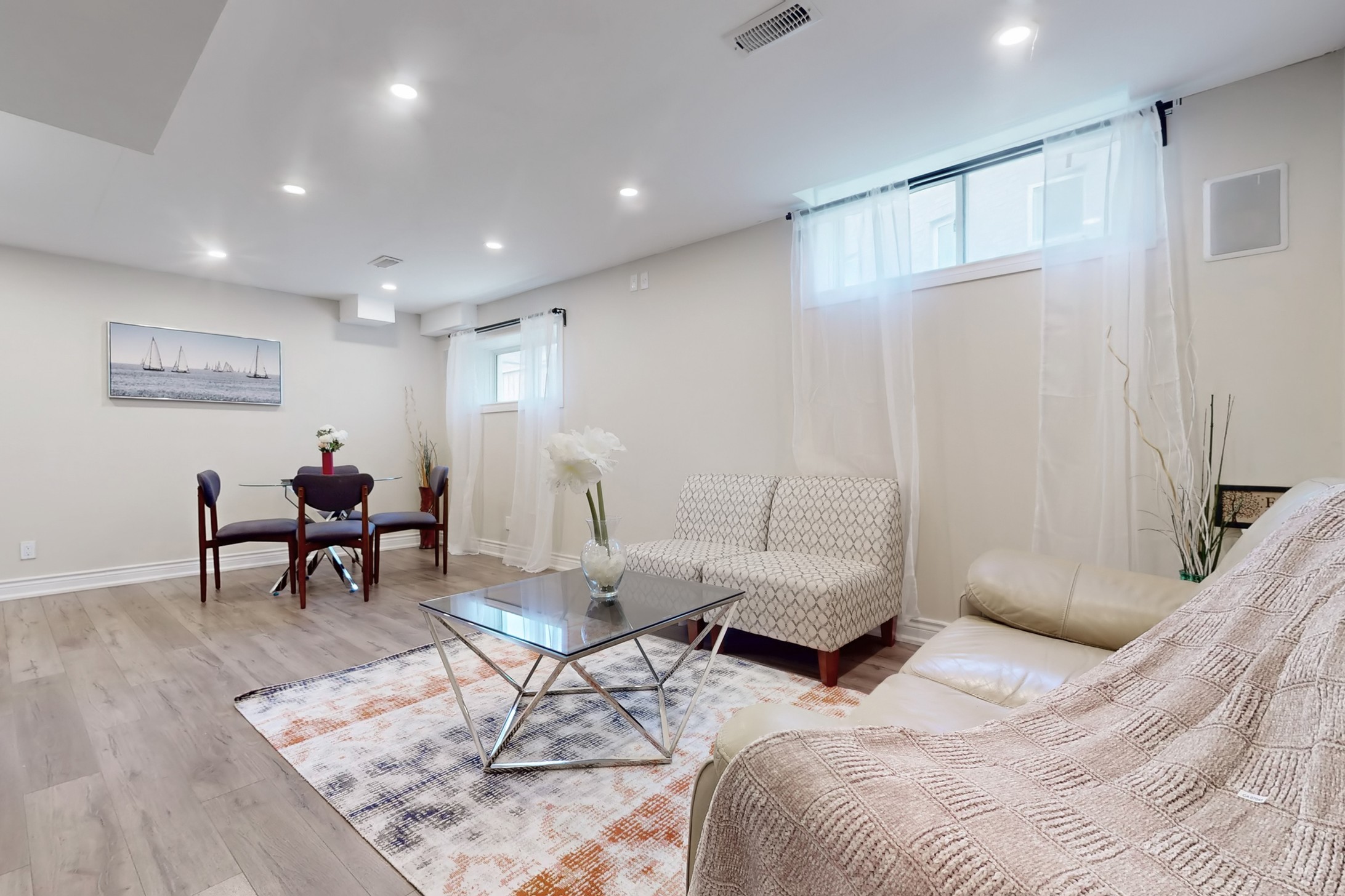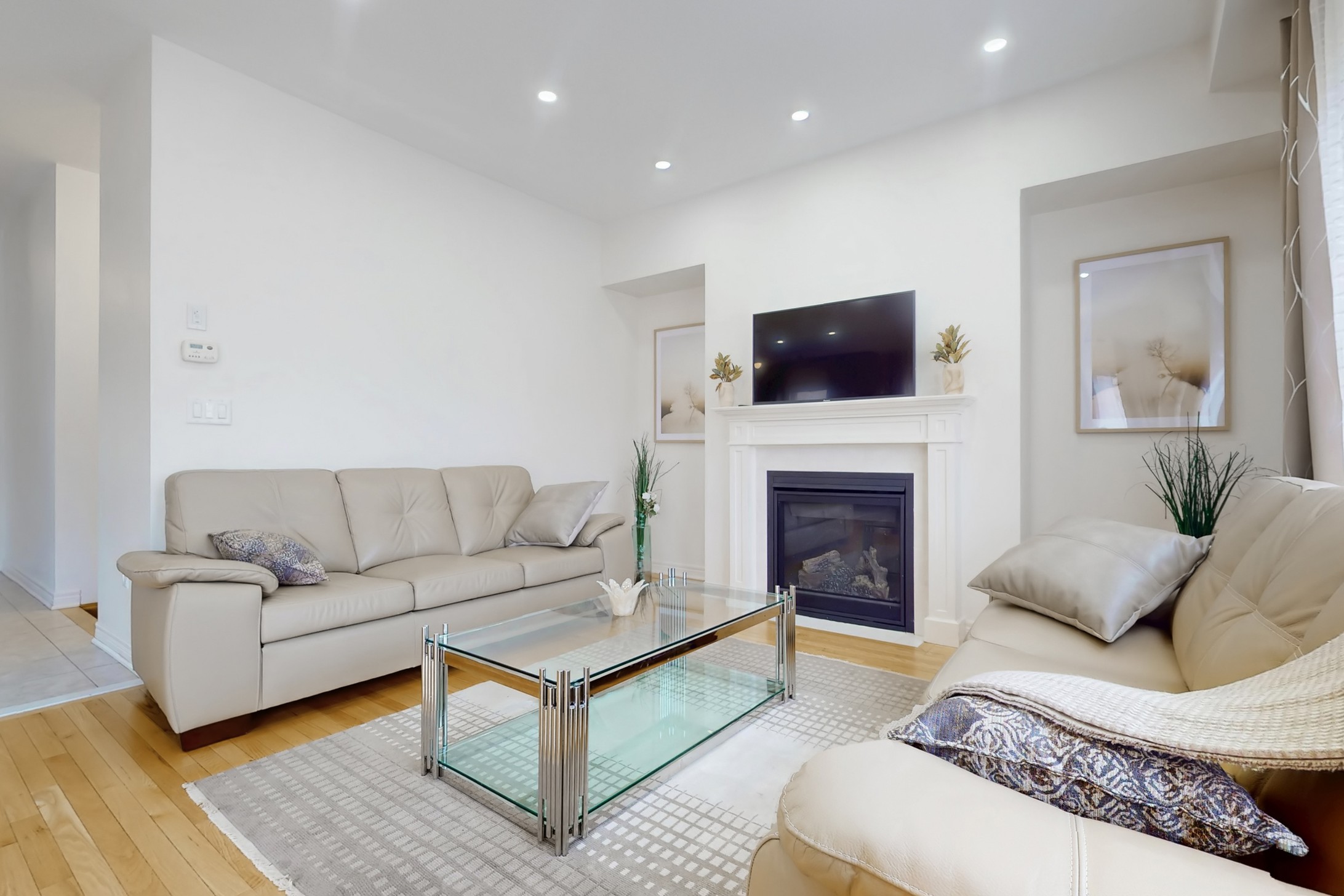This stunning home, located on a premium pie-shaped lot, offers nearly 3000 square feet of beautifully designed living space. The open-concept layout features 9-foot ceilings, creating a spacious and airy atmosphere. The modern eat-in kitchen is equipped with a large center island, breakfast bar, quartz countertops, and stylish lights/ pot lights. The dining area provides a walkout to the deck and backyard, making it ideal for entertaining. The formal family room includes a cozy gas fireplace for added warmth and comfort. Upstairs, you'll find four generously sized bedrooms, with the convenience of a second-floor laundry room. The custom-finished lookout basement apartment, accessible through a separate entrance, includes a fifth bedroom, a 4-piece bathroom, a second laundry, a full kitchen, and a built-in sound system.