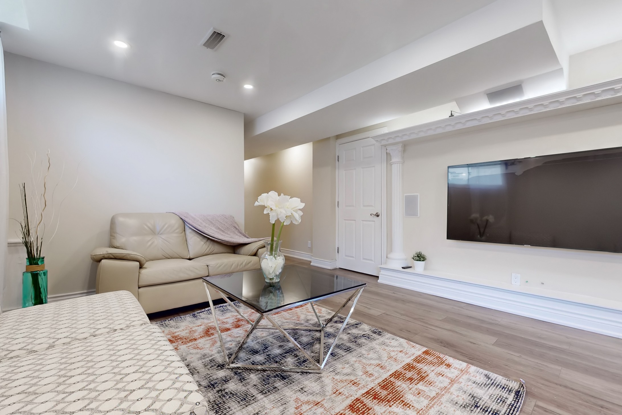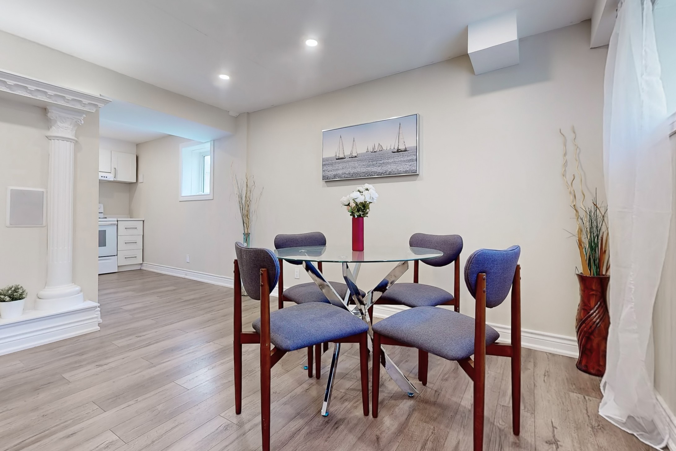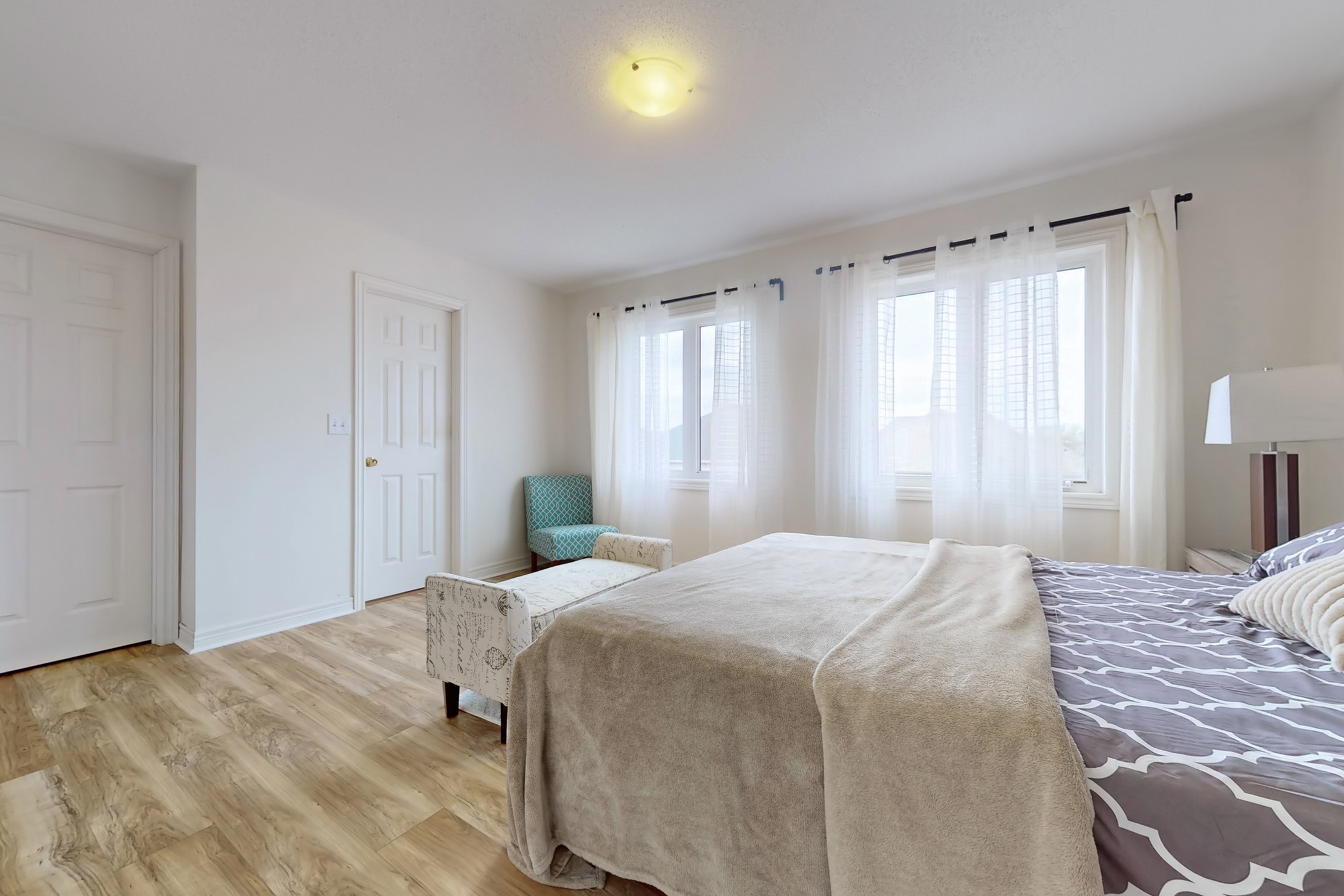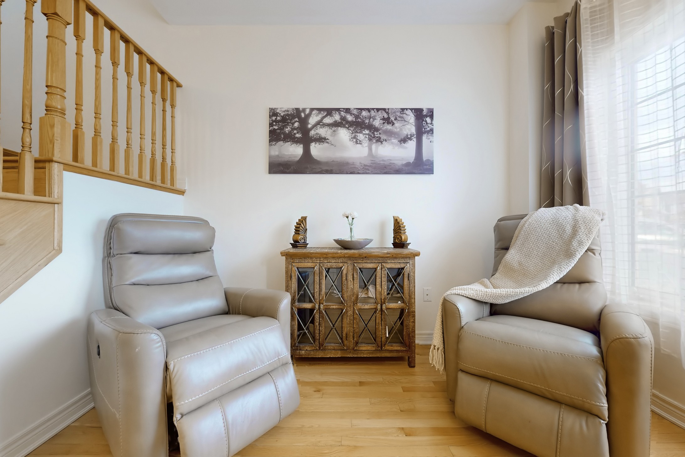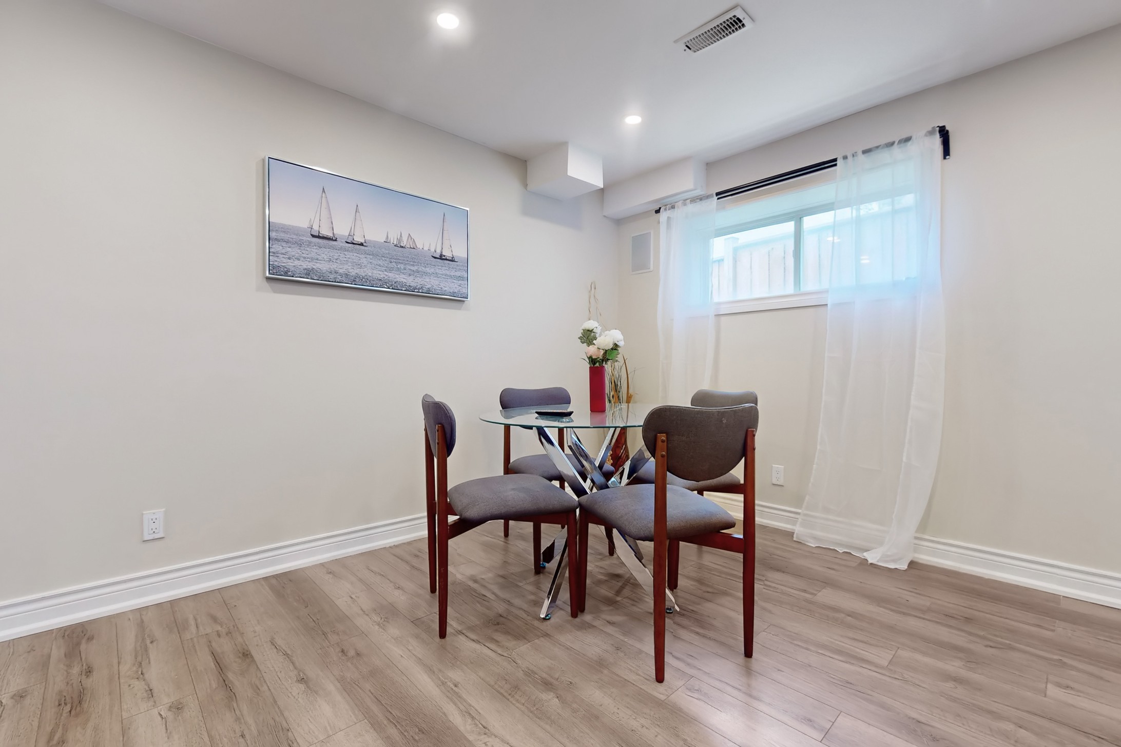 This stunning home, located on a premium pie-shaped lot, offers nearly 3000 square feet of beautifully designed living space. The open-concept layout features 9-foot ceilings, creating a spacious and airy atmosphere. The modern eat-in kitchen is equipped with a large center island, breakfast bar, quartz countertops, and stylish lights/ pot lights. The dining area provides a walkout to the deck and backyard, making it ideal for entertaining. The formal family room includes a cozy gas fireplace for added warmth and comfort. Upstairs, you'll find four generously sized bedrooms, with the convenience of a second-floor laundry room. The custom-finished lookout basement apartment, accessible through a separate entrance, includes a fifth bedroom, a 4-piece bathroom, a second laundry, a full kitchen, and a built-in sound system.